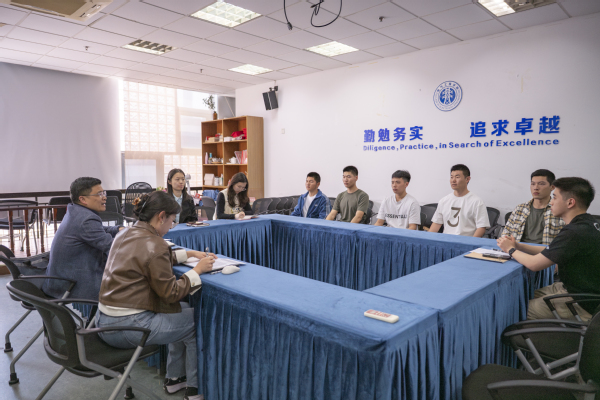 曲家瑶围绕退伍大学生关心的学费减免、专业调整、升学就业等政策进行了介绍,开展了针对性防诈骗宣传。在交流互动环节,与会同学分享了部队经历及心得,现场气氛热烈。与会老师耐心解答了退伍大学生关心的问题,并为退伍大学生赠送了学院文创纪念品。