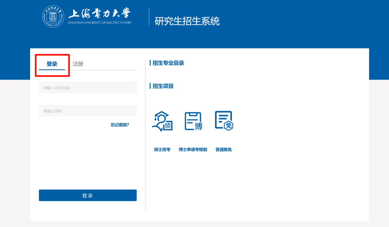 考生登录https://yz.shiep.edu.cn进入我校研究生招生系统。