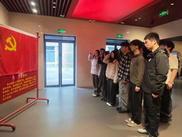 参观结束后,入党宣誓仪式在鲜艳的党旗前正式举行。全体新党员整理衣冠、肃然而立,右手高高举起、握拳过肩,在领誓人的带领下庄严宣誓。铿锵有力的誓言回荡在展厅之中,字字句句凝聚着对党的赤胆忠心,彰显着为共产主义事业奋斗终身的坚定决心。