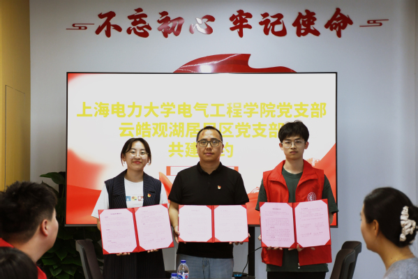 为深入贯彻落实党的二十大和二十届三中全会精神,推动党团组织在基层治理中协同发力,近日,电气工程学院团委和学院本科生第五党支部前往浦东新区南汇新城镇云皓观湖居民区党群服务中心,与社区开展党团共建签约仪式。云皓观湖居民区党支部书记严海涛、电气学院团委书记刘紫薇、本科生第五党支部书记曲家瑶以及2024级电气合作办学专业学生代表参加。