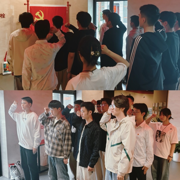 活动结束后,党员们前往国歌展示馆进行参观。可移动的浮雕英雄墙、可触摸的音符时间线、可聆听的国歌故事厅……场馆内的互动展示让同学们目不暇接,也让他们意识到《义勇军进行曲》不仅仅是一首歌曲,更是一种精神、一种力量、一种信仰,从革命战争年代的战斗号角,到和平建设时期的时代强音,始终激励着中国人民不断前进。最后支部的党员同志们肃立在入党誓词和鲜艳的党旗前,右手高举,庄重而坚定地重温入党誓词。
