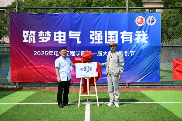 刘建锋和叶华刚为电气工程学院“一站式”学生社区“智创家”工作室揭牌,工作室将组成师生共同体,搭建创新创业项目孵化、学生实践能力提升与智慧服务的一体化的平台,赋能学生创新素养、创造能力提升与发展。