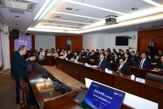 陈清泉院士以“三个前所未有”开篇,强调当前国家对科技的重视、对科学家的爱护以及科学家实现理想的机遇均达到历史新高。围绕电力系统创新性人才培养核心,陈院士从科学世界的无限可能性切入,深入阐释了新质生产力与科学、工程、经济的内在关联,系统解读了“双碳”目标下新能源革命的发展趋势,以及人工智能对教育领域带来的机遇与挑战。他提出的“四网四流”融合理念——能源网、信息网、交通网、人文网与能源流、信息流、物资流、价值流的深度融合,引发在场师生强烈共鸣。