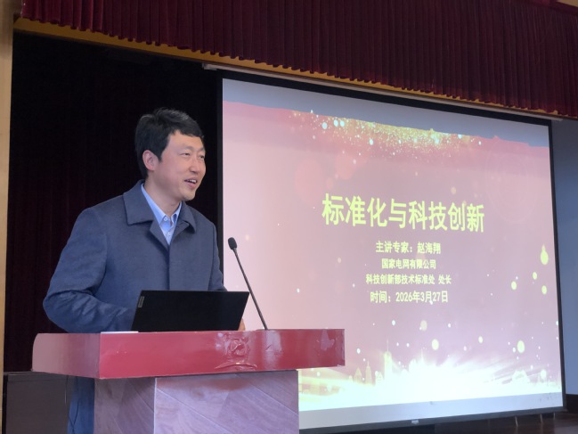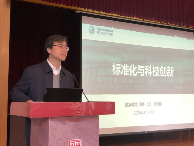 3月27日下午,国家电网公司科技部技术标准处处长、教授级高级工程师赵海翔应邀莅临我校,在杨浦校区小礼堂为电气工程学部师生作了题为《标准化与科技创新互动发展》的精彩讲座。讲座由电气工程学部主任马静主持,学部副主任林顺富、学部副主任李晓露,以及百余位师生到场聆听。