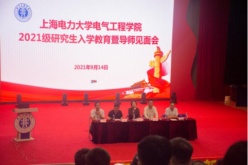 9月14日上午,电气工程学院2021级研究生入学教育暨导师见面会在临港校区举行。学院党委书记赵玲、院长李东东、副院长杨兴武,副院长林顺富、导师代表、辅导员及全体2021级研究生参加会议,会议由学院党委副书记叶华刚主持。