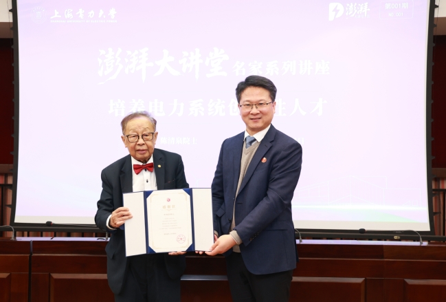 1月24日上午,“澎湃大讲堂”首场报告在杨浦校区行政中心九楼一号会议室举行,活动电气工程学部承办。中国工程院院士、香港大学荣誉教授、香港理工大学杰出讲座教授、世界电动车协会创始主席及轮值主席陈清泉教授应邀作学术报告。报告由校党委副书记、副校长朱克勇主持,党委宣传部部长石笑寒、电气工程学部党委副书记叶华刚、学部副院长李晓露及学部师生代表聆听报告。