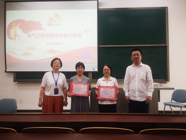 会上,学院特聘王鲁杨、杨欢红两位教师为电气工程学院党建指导员,赵玲、李东东为学院党建指导员颁发聘书,请两位长期担任教工党支部书记的教工党员继续发挥表率作用,为进一步推动学院党建工作发展、提高党建科学化水平作出更大贡献。