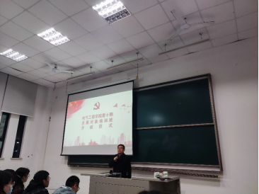 在开班动员大会上,叶华刚老师首先充分肯定了发展对象成员们的努力,其后,他对成员们提出了三点希望:一是“加强理论学习,端正入党动机”,同时要把所学理论知识付诸实践,把学思践悟融于日常;二是“坚定理想信念,提高思想认识”,要对党忠诚,充分利用学习强国和青年大学习平台提高思想认识,在思想上和行动上与党保持一致;三是“发挥模范带头作用”,理论结合实际,紧密联系群众,做好榜样示范引领,做有责任有担当的青年。动员大会的最后,叶华刚书记对学员们给予鼓励,真正做到学有所思、学有所得、学有所成。