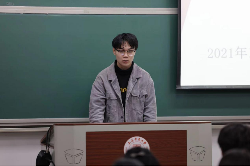 往年冠军获奖班级代表、2020029班文体委员杨洪通过ppt向大家展示了歌咏比赛的形式与流程,在活动筹备、现场表演等方面为同学们分享了比赛获奖经验,并对每个班级在合唱训练中遇到的问题给出了针对性的措施和方法。