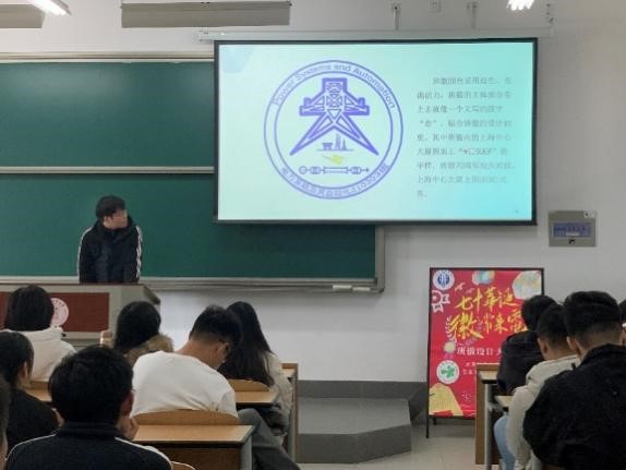 比赛开始前,各班代表按照抽签顺序依次上台,对自己班级设计的班徽进行讲解与展示。各位评委从班徽创意、文化底蕴、色彩搭配、演讲的综合表现进行评分。最后,余开华老师对各班的班徽设计进行点评,并为获奖班级颁奖。此外,本次活动增加了网络人气奖,通过上电电气研会公众号平台的投票,让更多的同学参与到这次活动中。