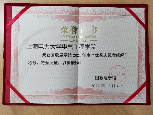 电气工程学院已经连续七年获得了国歌展示馆“优秀志愿者组织”的称号,这是对电气学子认真负责、积极向上的志愿精神的肯定和赞扬。“微光志愿者服务队”的志愿者们通过国歌展示馆的平台自身能力得到了锻炼,不仅学习到新知识,在志愿服务中了解新中国成立的历史,探索国歌背后的故事,在实践中提升大学生的社会责任感。国歌展示馆是全国爱国主义教育示范基地,志愿者们用专业的讲解和热情的服务抒发着对祖国的热爱,用实际行动践行了爱国精神。希望在今后的校馆联动背景下,继续为志愿者们营造有成长、有收获、有情怀的志愿服务平台,培养德才兼备、全面发展、具有爱国爱校热情的当代大学生。