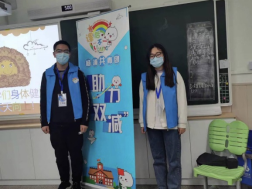 2021年12月7日,杨浦区团委“青春杨浦”公众号报道宣传了我校志愿者的优秀事迹阅读量达7500+。同时,电气工程学院“双减”志愿者代表李江缘同学(下图左二),参加了12月3日在国歌展示馆举办的杨浦区国际志愿者日青年主题活动,上台接受小学生代表献上的红领巾。