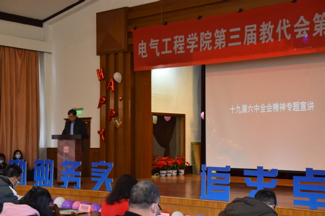 12月31日,校党委副书记、校长李和兴到电气工程学院作十九届六中全会精神专题宣讲,学院全体教职工认真听取了宣讲报告。