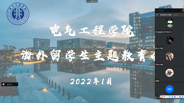 新年伊始,面对海外奥密克戎毒株新冠疫情严重的形势,在英国思克莱德大学新学期开始之际,为深入了解海外交流学生的学习、生活、疫情防护等方面的情况,1月17日,电气工程学院通过腾讯会议组织召开海外学生主题教育会。电气工程学院党委副书记叶华刚、团委书记刘紫薇、教务员王秀芬、相关辅导员老师以及在英学习的全体学生参加了会议。