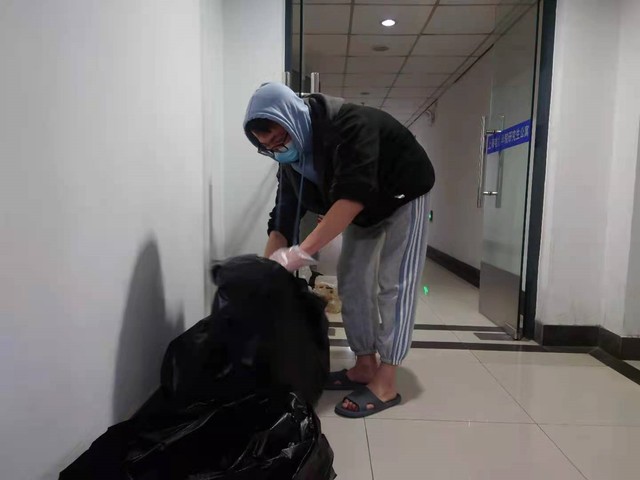 身为楼层负责人,叶俊斌同志深知“层长”二字背后的重量。封闭7天中,他总是第一个起床在电梯口为楼层同学等待和配送早餐;封闭7天中,他总是第一个拿好垃圾袋和手套出现在垃圾处理现场;封闭7天中,他总是第一个出来挨户敲门提醒大家排队下楼进行核酸检测……