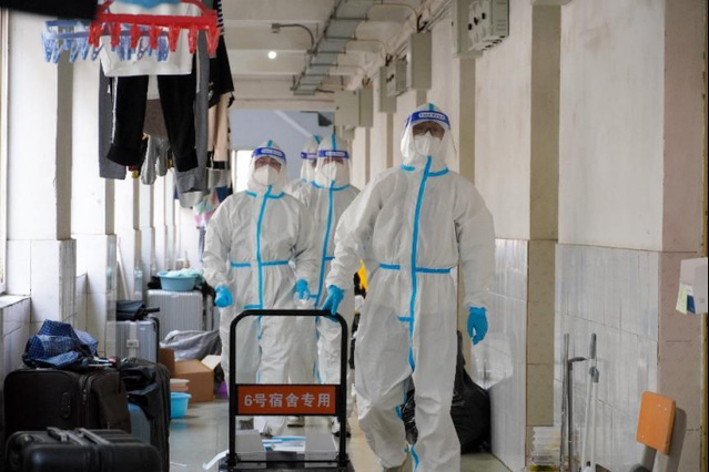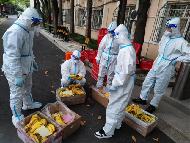 志愿者们为了说服自己去四号楼工作也需要很大的勇气,除了早出晚归,每日三餐的分发也是一项非常艰巨的任务,4号楼和5号楼加起来共600人左右,队员们需要确保每位同学都领到盒饭与水果,在搬运过程中,有几位同学的手被箱子磨出了水泡,但仍会尽最大努力帮助同学们吃饱吃好;长时间穿上防护服很闷热,不能喝水也不能上厕所,极大的体力消耗加上防护服的闷热,使得大家的衣服都被汗水浸湿。有的同学还因此生病但仍然选择默默坚持,为同学们服务;志愿者们本是研究生团体,在肩负防疫工作的同时,志愿者们还需要兼顾科研任务,要互相协调时间,参加组会,完成项目与论文;有的队员害怕家人担心,没有和家人提到在做防疫志愿者;最近这几天在沪外隔离和治疗的同学们就要回校在6号楼集中隔离观察了,志愿者们需要进入到他们的寝室给他们打包枕头、被子和床单等个人床上用品,虽然有所顾忌,但是大家还是义无反顾地完成了任务。