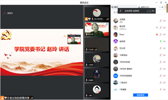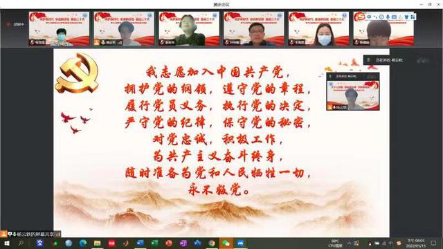 吴晗璐介绍党员组织关系转接相关注意事项及要求,按照不同情况进行分类讲解并对常见问题重点提醒。她勉励毕业班党员离校不离党,站好最后一班岗。会上组织了师生重温入党誓词。研究生党员杨云轶领誓,全体党员同志开启视频,紧握右拳,在线上开展了一场庄严而又别开生面的宣誓。