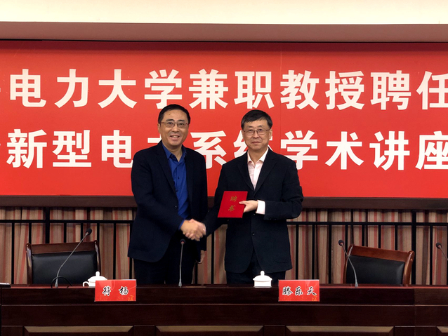 会上,符杨宣读兼职教授聘任决定,并向滕乐天教授颁发了聘书。我校电气工程学院院长李东东介绍了滕乐天教授的简历,随即举行学术讲座。