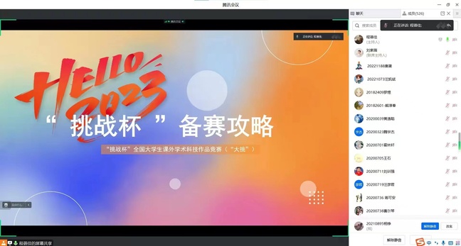 宣讲会上,历届获奖已毕业的校友还发来视频,分享了自己的参赛经验与成长体会,鼓励在校的学弟学妹在各类科创竞赛中勇于摘金夺银。线上线下参会同学备受鼓舞,传承了大学生科创竞赛热情。
