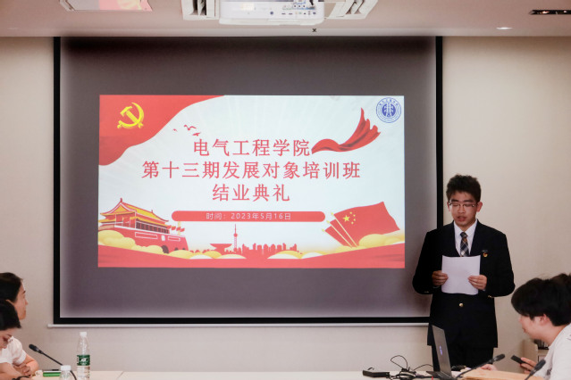 为加强对发展对象的培训工作,进一步提高培训学员理论素养,近日,电气工程学院第十三期发展对象培训班结业典礼在杨浦校区行政楼九楼六号会议室举行。学院专职组织员吴晗璐、王海思,学院团委书记刘紫薇,本科生第五党支部书记曲家瑶及全体第十三期发展对象培训班学员参加,会议由梁志红主持。