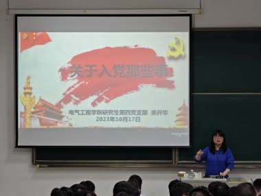 能机组织员王喆首先围绕入党标准、入党条件、党的纪律和党的作风等方面深入浅出地向大一新生介绍了党的相关知识。随后介绍了确定党员发展对象的流程,包括七项工作,即“选苗、个人提出申请、确定培养联系人、确定积极分子、党校学习、确定发展对象、政治审查”,这七项工作构成了党员发展的全过程。王喆指出,入党是每个青年成长的重要历程,需要具备一定的思想觉悟和理论素养,作为一名青年学生,要坚定理想信念,主动学思践悟习近平新时代中国特色社会主义理论。电气学院研究生第四党支部书记余开华就如何端正入党动机、如何撰写入党申请书、如何更好地发挥自己的作用等方面为研一新生进行了详细的讲解。