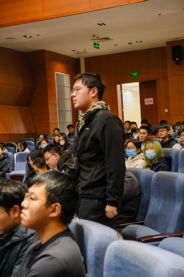 分享结束后,嘉宾与现场观众进行了互动交流。现场2022级同学踊跃提问,提出如专业课复习频率如何确定、专业课学习过程中如何克服遇到的困难、对专业课程的学习方法疑惑、推荐的学习书籍与平台资源等,嘉宾现场予以了解答并分享了自己的看法。