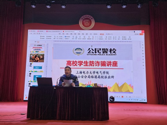 为进一步提高学生防诈骗意识,提升识骗、防骗能力,3月22日,电气工程学院开展大一年级学生防诈骗安全讲座,邀请临港高校派出所副所长张华担任主讲,电气工程学院辅导员朱梦婷、张文文、程蓓佳及全体2023级学生参加。讲座由校保卫处治安科科长王旭主持。