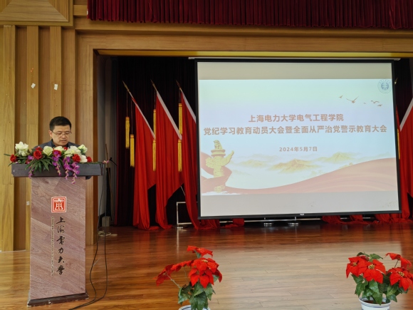 为深入学习贯彻习近平总书记关于党纪学习教育的重要讲话和指示精神,落实学校党纪学习教育工作部署,认真学习贯彻《中国共产党纪律处分条例》,推动全院师生党员扎实开展好党纪学习教育。5月7日,电气工程学院党纪学习教育动员暨全面从严治党警示教育大会在杨浦校区小礼堂召开,学院党政班子成员、党委委员、纪检委员、党风廉政监督员、党支部书记及全体教职工参加会议。会议由学院党委副书记叶华刚主持。