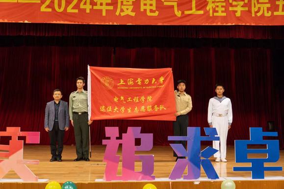 会上,叶华刚为“电气工程学院退伍大学生志愿服务队”负责人授队旗。