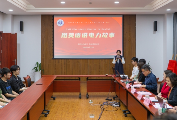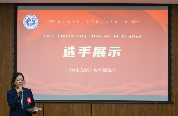 随后,紧张激烈的“用英语讲电力故事”比赛决赛开始。“用英语讲电力故事”以讲述电力故事为主线,采用英语表达的方式传承和弘扬能源电力精神。经过前期的选拔,共有11位选手脱颖而出晋级决赛。选手们用英语展现了对电力行业的热爱以及对能源电力精神的深刻理解,参赛选手的精彩演讲获得在场师生的阵阵掌声。