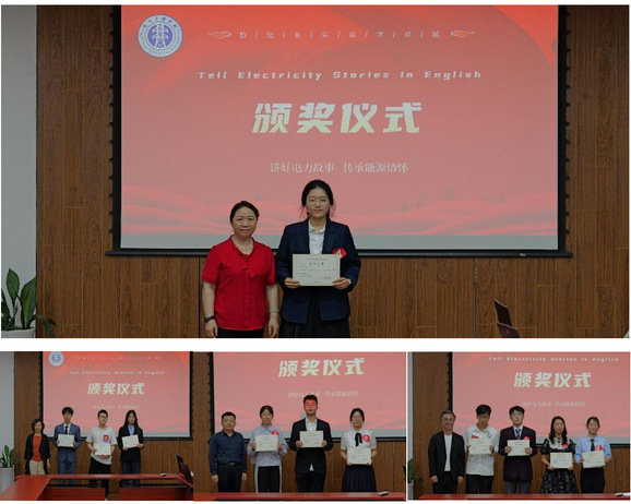经评审,电气工程学院王若菡同学获得一等奖;朱政羽、杨力骁、王思雨同学获得二等奖;王馨诒、雷慧馨、周禹杰同学获得三等奖;翟佳雯、张弛、董健成、桂楚玥同学获得优胜奖。与会老师为获奖同学颁奖。