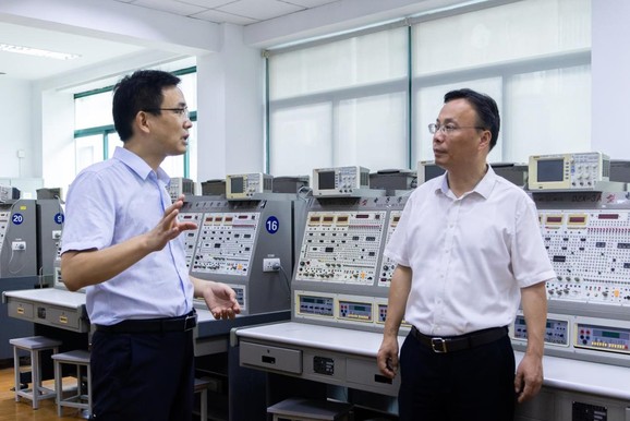 8月25日上午,校党委副书记、校长顾春华带队调研电气工程学院,实地考察实验室,与学院班子成员座谈交流。党委副书记、纪委书记张艳林,党委副书记仰颐,党委副书记、副校长朱克勇,副校长杨宁、张波陪同调研。