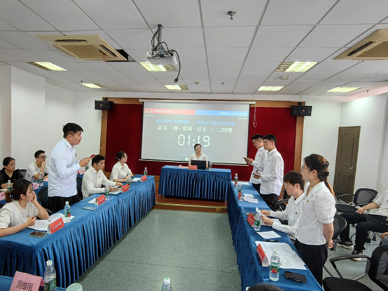 本次主题党日观摩活动采取辩论赛的形式展开,辩题是“反腐倡廉应该重在正面教育还是反面警示”,正方观点是“反腐倡廉应该重在正面教育,反方观点是“反腐倡廉应该反面警示”。