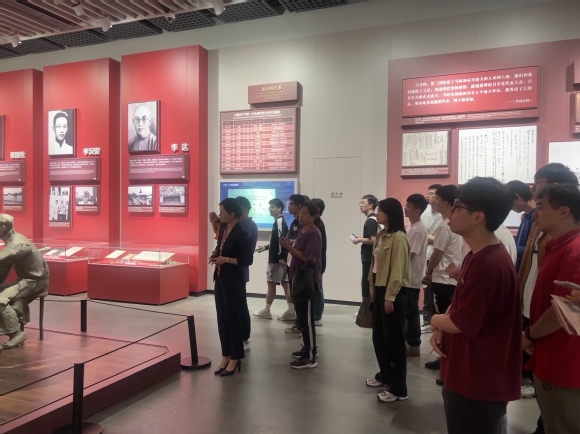 同学们在中共一大会址原址,通过通过参观文物,回顾建党初期的峥嵘岁月。
