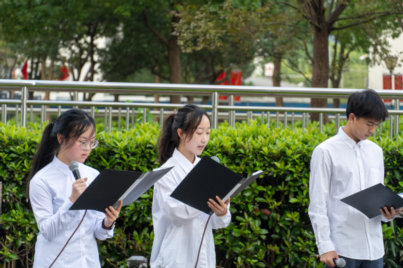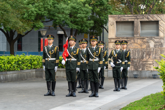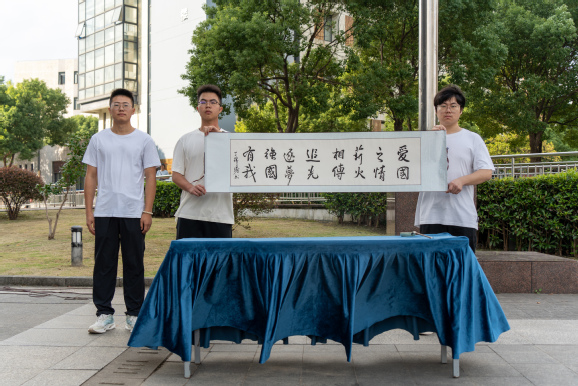 9月30日清晨,电气工程学院和自动化工程学院在学校杨浦校区举行升旗仪式。电气工程学院国歌展示馆宣讲员志愿者带来“国旗下讲国歌故事”,同学们生动讲述了国歌诞生及国歌背后的故事。学院团学干部丁锦胜同学作书法展示,“爱国之情,薪火相传,追光逐梦,强国有我”每一个字都跃动着澎湃的力量。