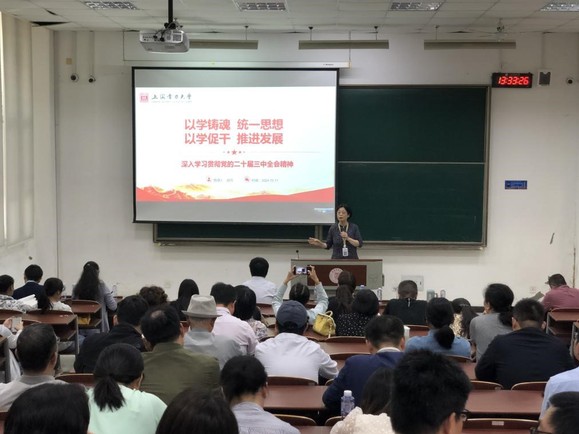 赵玲以“以学铸魂,统一思想;以学促干,推进发展”为主题,为学院全体教职工做党的二十届三中全会等中央、上海市委和校党代会精神宣讲。赵玲指出,学习好贯彻好党的二十届三中全会精神,是当前和今后一个时期学校的一项重大政治任务,也是电气工程学院全面深化改革、加快高质量发展的理论遵循和行动指南。赵玲强调,要坚持以习近平新时代中国特色社会主义思想为指导,把学习贯彻党的二十届三中全会精神与学习贯彻全国教育大会精神、十二届上海市委五次全会精神、上海电力大学第五次党代会精神结合起来,凝聚改革共识、激发改革活力,用“拼”的精神、“闯”的劲头、“实”的作风,迎接即将到来的本科教育教学审核评估工作,以评促建,推动学院各项工作再上新台阶。