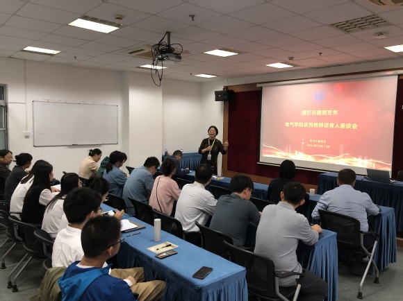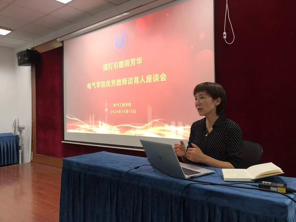 赵玲主持活动,她指出,教书和育人相辅相成,育人和育德辩证统一。作为“电力工程师摇篮”的电气工程学院,多年来,教师们立足三尺讲台,为学生提灯引路,用心用情用行动塑造“光明使者”,取得了丰硕成果。通过邀请获得校级荣誉的优秀教师代表分享从教经历、交流育人心得,能够帮助青年教师深化对教育家精神的理解,提升言为士则、行为世范的道德情操,从而更好地担负起立德树人的崇高职责。