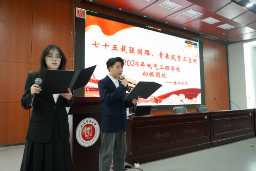 接下来,在表彰先进环节,主持人宣读了2024年电气工程学院初级团校优秀学员及优秀小组名单,刘紫薇老师他们颁发了荣誉证书。