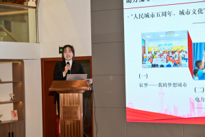 学院大学生理论宣讲比赛一等奖获奖成员沈怡冰以地理电力人的视角,作青年参与美丽中国建设的美好愿景的现场宣讲;成员全彭莹从自身暑期社会实践参与杨浦住宅小区“花邻里”微花园改造出发,讲述青年参与“人民城市人民建”实践的感悟。