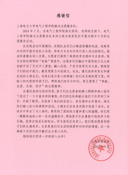 追逐光,成为光,散发光,“电娃”的身影将走进更多的场域,“大手拉小手”续写更多闪闪发光的故事!电气工程学院将进一步结合专业特色,深化“电力专业+科普”的模式,持续打造育人阵地,拓宽育人渠道,丰富育人内容,擦亮电力科普志愿服务品牌,找准专业服务社会的小切口,激发志愿活力,在人民城市建设中贡献“电娃”力量,在强国建设和民族复兴的伟大征程中,乘风破浪、奋楫前行,为中国式现代化挺膺担当!